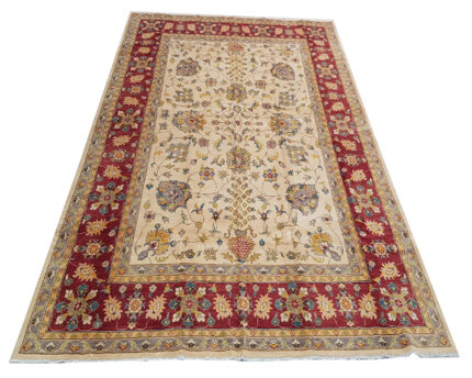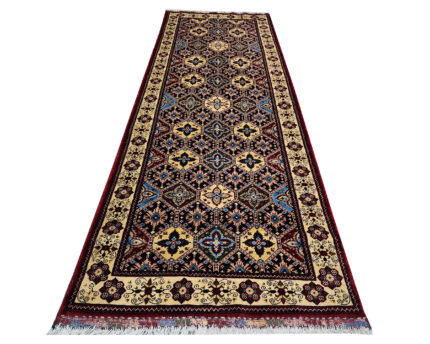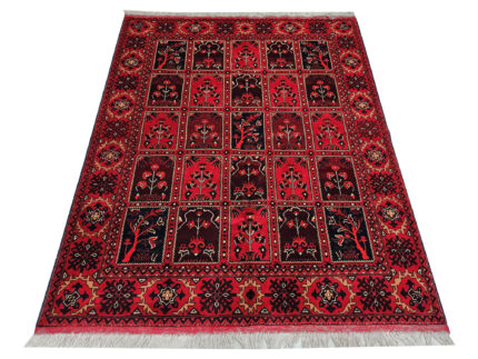 Chobi rugs CHOBI is a widely used commercial term used for hand made carpets from Afghanistan and to a diminished extent in the NWFP region of Afghanistan/Pakistan border. This term has been used since the displacement and return of refugees during and after the Soviet Afghan war in the 1980s. The uprooting of weaving populations effected traditional all wool weaving which had previously been almost exclusively based on Turkmen designs with an all wool structure in red tones as expressed by Afghan carpets. ( NB Not to be confused with the imitative Pakistan poly-chrome products such as ‘ Princess Bokhara ‘ ) Strong demand for furnishing concepts from the west to produce Persian style patterns most notably the concept of Ziegler carpets proved a good commercial success and a well made robust product using increasingly cotton as a foundation resulted. Following a western lead in tase since late 1980s the business has since 2000 fallen to a considerable degree to being administered via Pakistan merchants given the ease of export from Pakistan. Afghan weavers had largely returned to Afghanistan from Pakistan refugee camps during late 20th cent however since the Taliban/ Pashtuns take over of Afghanistan in 2021 disruption to weaving has again occurred.